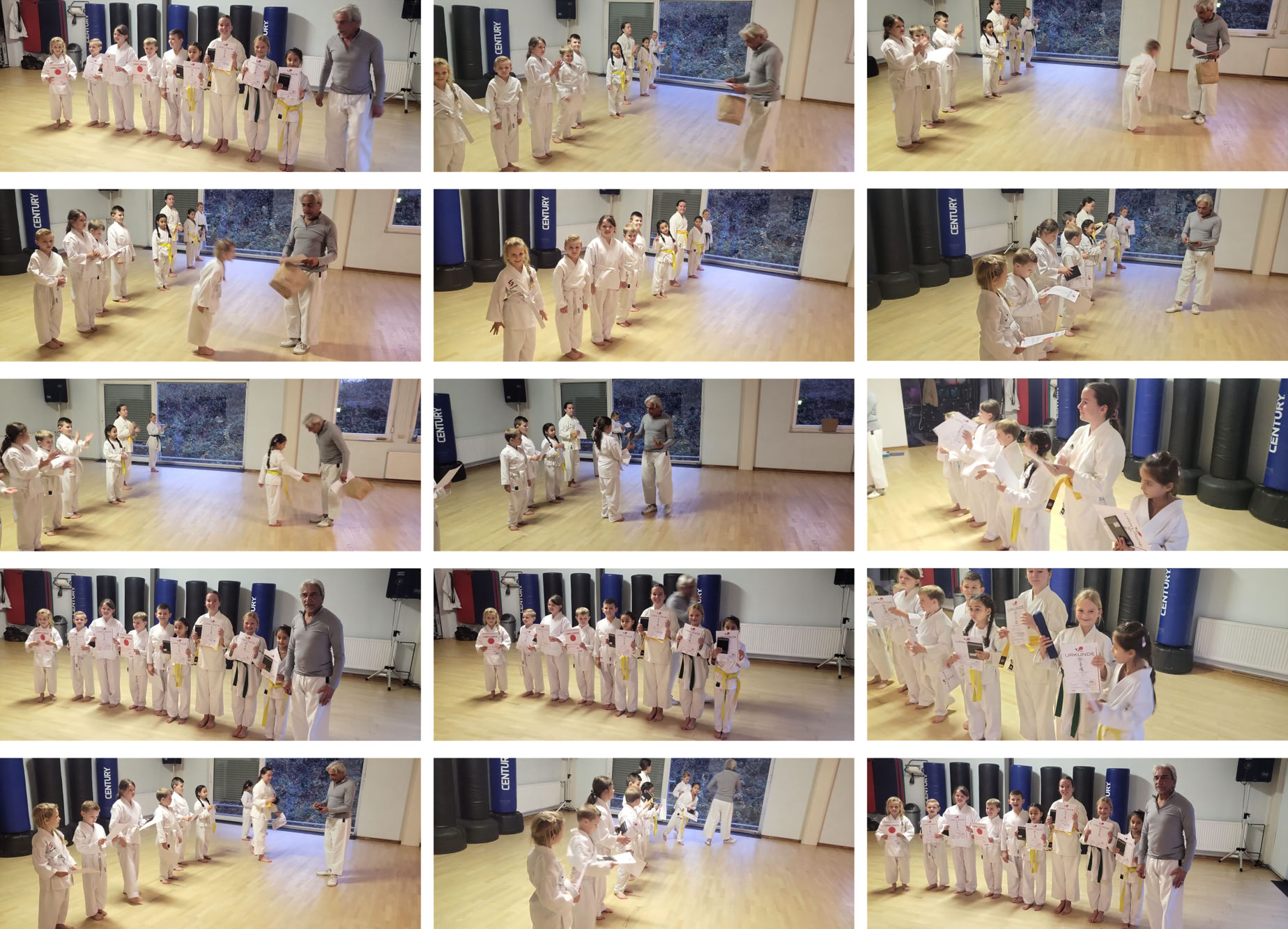 So können sich alle Teilnehmer freuen: Bei den Kindern und Jugendlichen wurden Prüfungen vom 9. (weißer Gürtel) bis zum 4. Kyu (blau) absolviert; die jungen und etwas älteren Erwachsenen zeigten Prüfungen vom 6. (grün) bis zum 2. Kyu (braun).